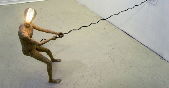 Одна из самых успешных инсталляций Шахина носит двусмысленное название Headlights. Это игра слов: слово, означающее попросту "лампочка", здесь трактуется буквально - "огни в голове". В итоге перед глазами зрителей оживают пугающие люди-лампы, которые тянутся к розетке, как наркоман к шприцу.