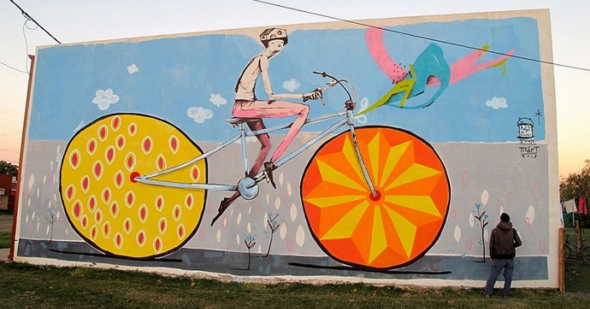 Ехали медведи на велосипеде, а за ними кот задом наперед… Всю эту картину удалось запечатлеть уличному художнику с весенним псевдонимом Mart. Кстати, он любит рисовать исключительно велосипеды. Яркие настенные фрески на данную тематику уже заполонили весь Буэнос-Айрес, а художник все продолжает рисовать. Первое граффити Mart нарисовал, когда ему было всего 12 лет.