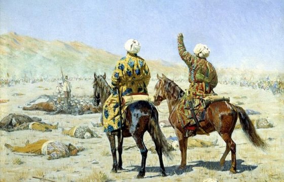 В 1867 году по приглашению генерал-губернатора молодой художник едет в только взятый русскими войсками Самарканд. С началом этой поездки начинается долгий путь Верещагина не только как серьёзного живописца, но и как солдата. После восстания туркестанцы окружают и штурмуют недавно захваченный русскими войсками город, и художник попадает в осаду вместе с небольшим гарнизоном солдат. За поднятие солдат в атаку против наступающего противника, Верещагин становится кавалером Императорского Военного ордена Святого Великомученика и Победоносца Георгия. Генерал-губернатор вручает герою орден и отдаёт ему личный крест.