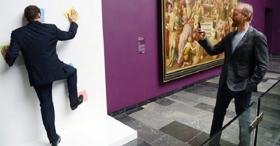 Речь идет о постановке дизайнера Erwin Wurm, в котором тот просит людей принять определенную позу ровно на 1 минуту. Действие проходит в рамках проекта “One Minute Sculptures”, который стартовал в 1990 году и продолжает функционировать до сих пор на радость поклонникам художника.