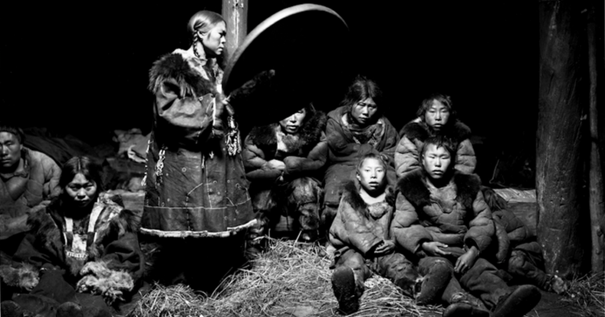 Корякская шаманка с бубном. Камчатский край, начало 20 века.
