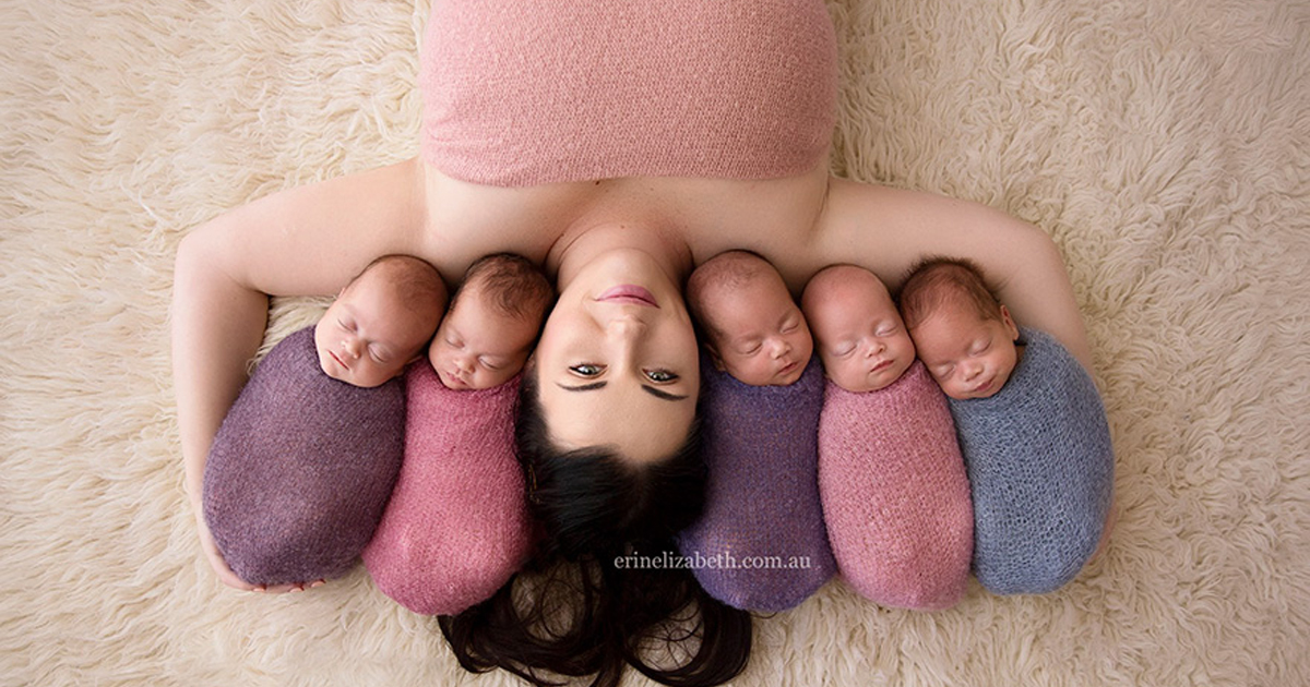 Ким Таччи и ее пять новорожденных малышей. Фото: Erin Elizabeth Photograpy.