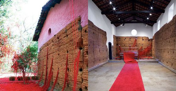 Внутри бывшей часовни художница расположила ткацкий станок, от которого тянутся алые нити