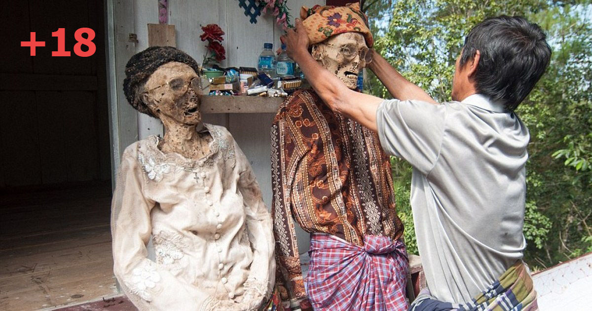 Буквально на днях в общине Torajan - этнической группе с гор Южного Сулавеси в Индонезии - начался праздник, название которого переводится как «Церемония чистки трупов». В дни этого праздника члены общины эксгумируют трупы своих родственников, проводят процедуру очистки и переодевают в новую модную одежду, а затем выставляют на всеобщее обозрение.