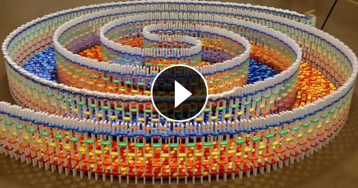 8 дней и 15 тысяч костяшек домино потребовалось, чтобы создать этот шедевр. Правда, для того чтобы его разрушить достаточно одного чиха или неловкого движения. Единственное оправдание состоит в том, что именно для этого этот шедевр и создавался. Это видео потрясающе красиво!
