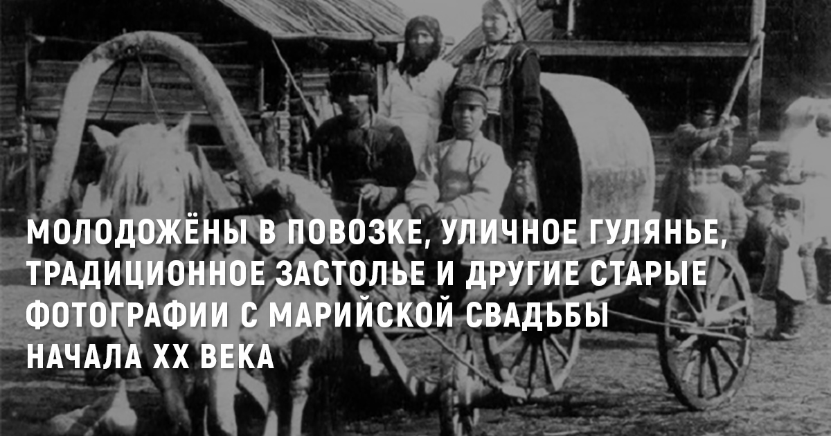 Молодожёны в повозке, уличное гулянье, традиционное застолье и другие старые фотографии с марийской свадьбы начала XX века