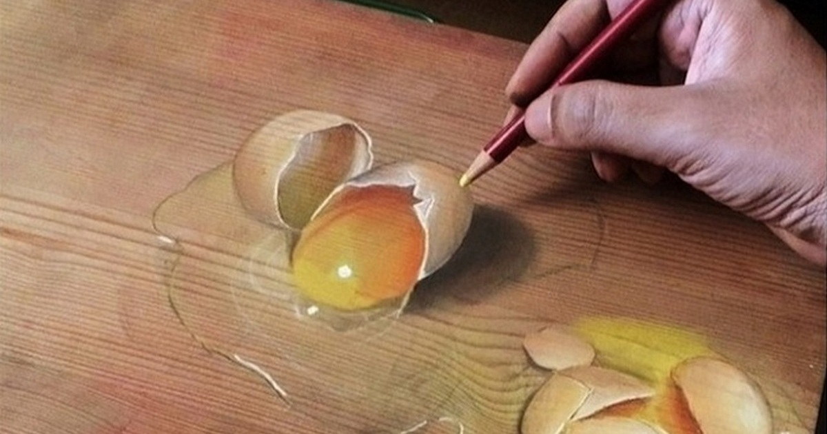 При помощи одних только карандашей и пастели, талантливый художник создает потрясающие гиперреалистичные иллюстрации на деревянных досках. Глядя на эти работы, хочется самому протянуть руку и убедиться, что на поверхности не лежит настоящее разбитое яйцо или помятая бумажка.