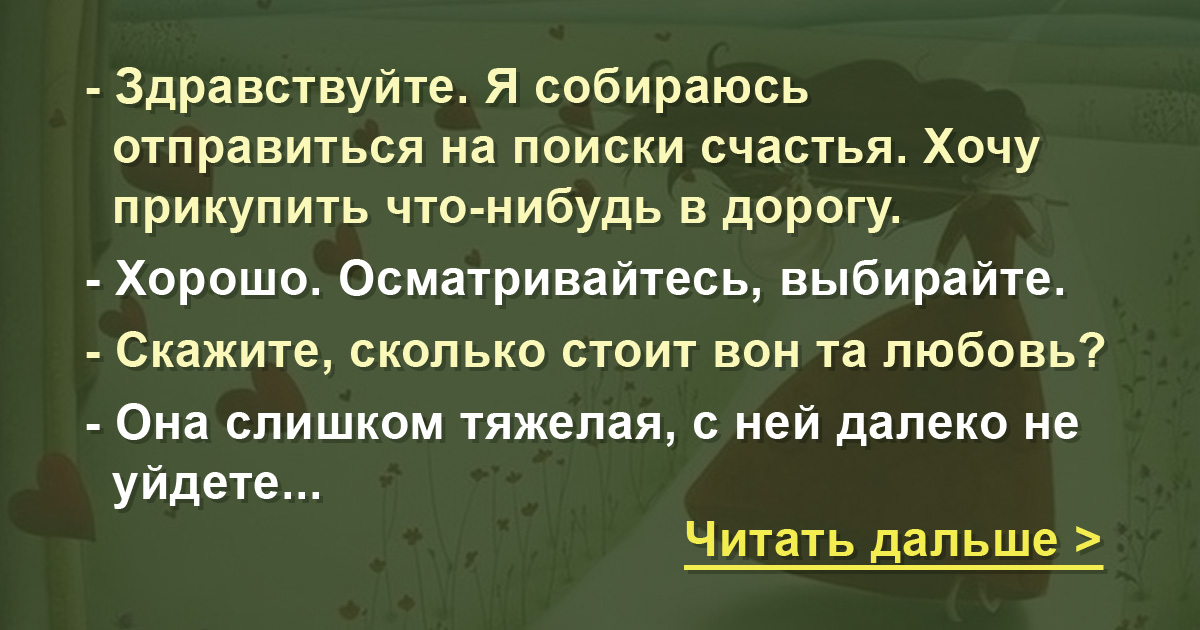 - Здравствуйте. Я собираюсь отправиться на поиски счастья. Хочу прикупить что- нибудь в дорогу.