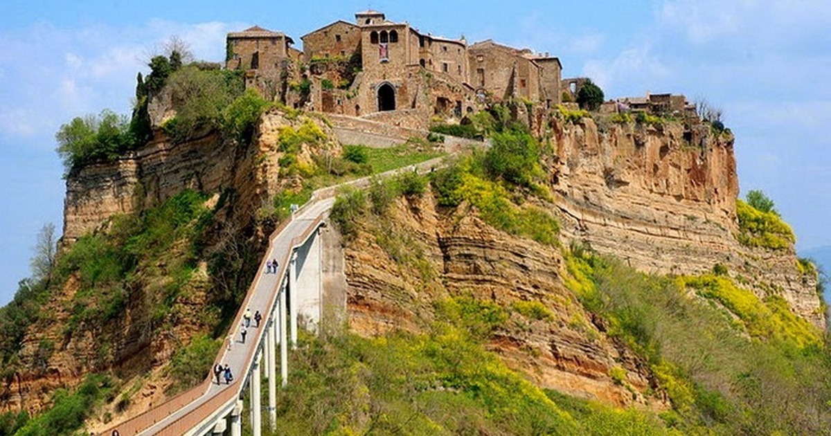 Чивита ди Баньореджо – один из самых загадочных итальянских городов, возраст которого превышает 2,5 тысячи лет. Разрушенный землетрясением в 17 веке, он остался практически безлюдным. Сегодня сюда с удовольствием приезжают туристы, чтобы совершить прогулку по средневековым улочкам и насладиться головокружительной панорамой горной гряды.