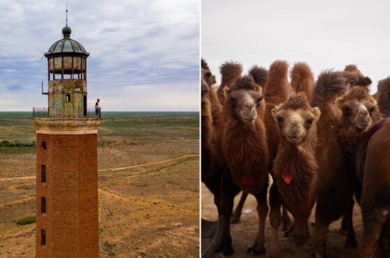 Всё дело в том, что когда-то Каспий был шире, чем сейчас, и этот маяк располагался на одном из островов и был ориентиром для проходивших по морю судов. Теперь же, когда вода отступила и побережье находится лишь в 30 километрах, с него никаких кораблей, конечно, не разглядишь. Маяк (на него можно подняться) используется как смотровая площадка для обзора окрестностей.