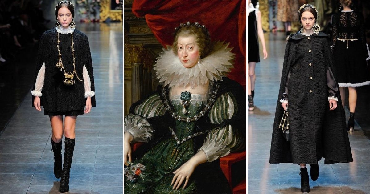 Слева направо: Портрет Анны Австрийской, Петер Пауль Рубенс, 1621-25 гг. \ Модель Люсетт Ван Бик на показе мод Dolce & Gabbana, осень 2012 года. \ Фото: google.com.