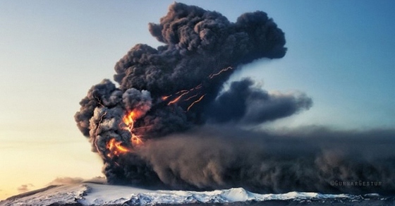 Потрясающие фотографии извержения вулканов со всего мира. Эйяфьятлайокудль в 2010 году, Исландия. Автор фото: Гуннар Гестур.