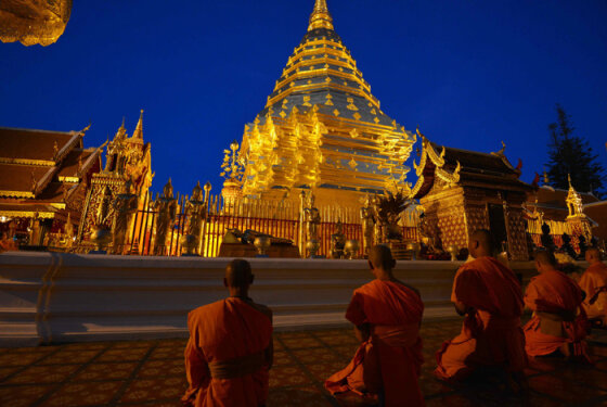 На горе Дой Сутхеп расположен древний храмовый комплекс. Подняться к нему не просто – сюда ведет длинная крутая лестница. Считается, что паломник, совершивший восхождение к храму, очищается от всех своих грехов. Перед входом на пагоду, расположена статуя слона – это именно он, по легенде, указал место для постройки храма, еще в XIV веке.