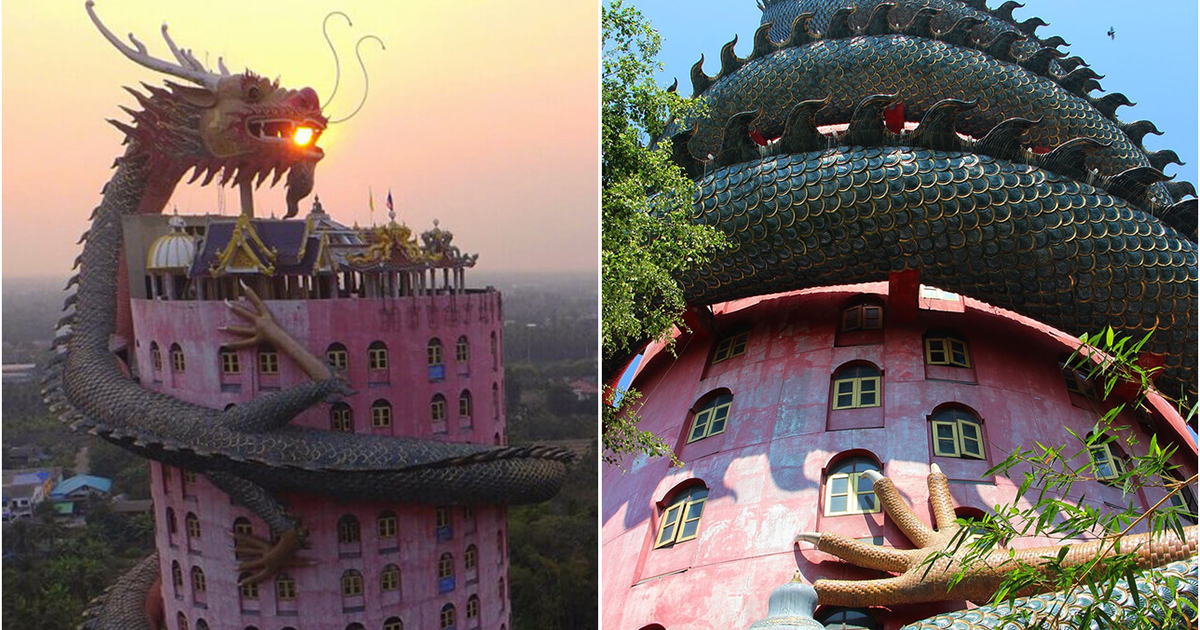 Необыкновенно красивое 17-этажное здание имеет высоту восемь десятков метров. Это розовая башня, по которой наверх отважно карабкается гигантский зелёный дракон. Это место всего в трёх десятках километров от Бангкока, но его не найдёшь ни в одном туристическом путеводителе. Происхождение этого храма до сих пор неизвестно. Кто и зачем его построил, можно только гадать. Башня выглядит заброшенной. Вероятно, этому поспособствовало разграбление в 90-х годах прошлого века.