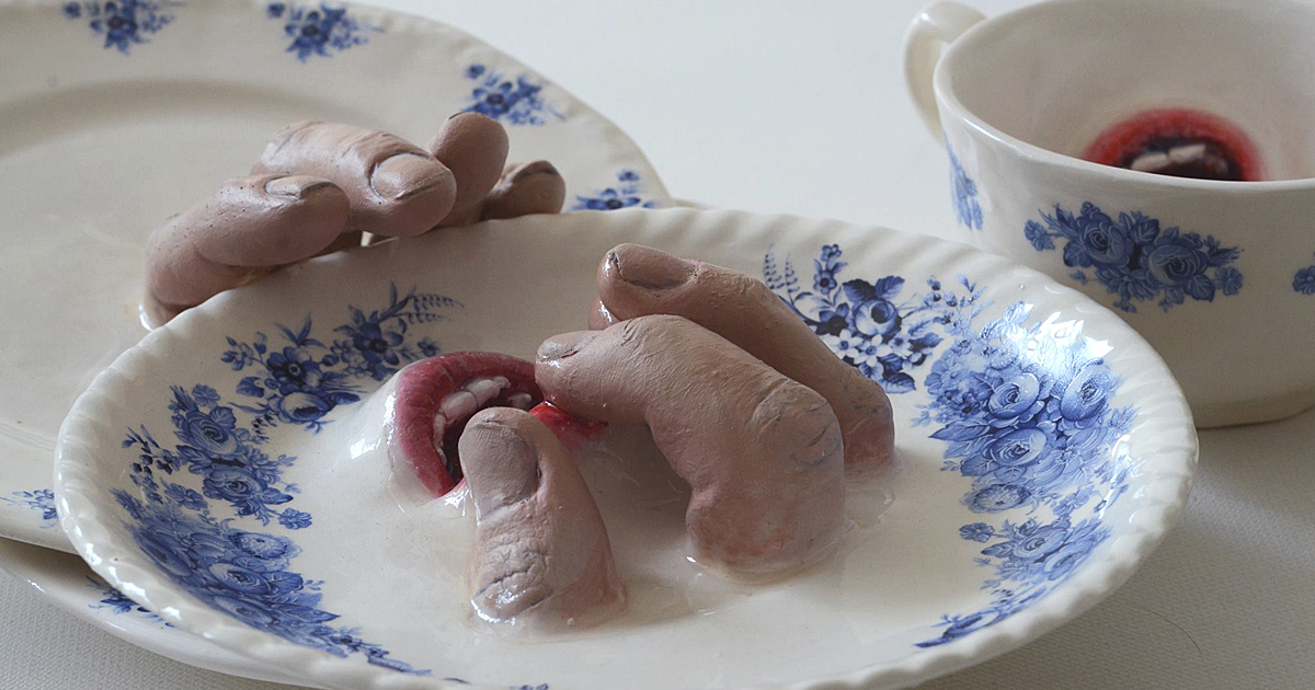 Ронит Барагна (Ronit Baranga) - психолог по образованию и скульптор по призванию, вдохновлённая непростыми отношениями между человеком и предметами, создала шокирующую серию работ, которая могла бы превзойти в своей неординарности даже самый изощрённый сюжет сериала о Ганнибале, где обаятельный доктор Лектор, устраивая далеко не безобидные трапезы, как ни в чём ни бывало ведёт светские беседы со своим «коллегой» детективом Уиллом Грэмом. И всё бы ничего, но то, что делает талантливая мастерица – самая настоящая дьявольщина, по сравнению со всеми эстетическими сценами и блюдами из фильма. Стоит только взглянуть на то, как из чашки тянется алый язык и чуть ли не перед носом щёлкают зубы, тут же бросает в холодный пот от малоприятных ощущений того, что вся эта посуда ещё немного и точно оживёт, уйдя со стола на своих двоих. Согласитесь, что есть из такого сервиза будет далеко не каждый. Но ведь находятся и те, кому подобные тарелочки, чайнички и вазочки по душе.