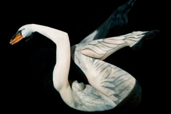 Роспись по телу в виде лебедя. Автор работы: Gesine Marwedel.