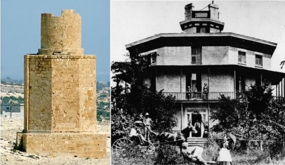 А вот другое восьмиугольное сооружение античных времен вообще вошло в список семи чудес света. Это Александрийский маяк, возведенный в III веке до н.э., но впоследствии разрушенный. Маяк стоял на квадратном основании, со средней секцией в виде восьмиугольника и «круглой» верхней частью. «Подражая» маяку, похожими в древнем мире строили и другие здания, тем более, что восьмерка как число во многих культурах имела магическое значение. Поначалу такими строили разные «общественные» или культовые сооружения.