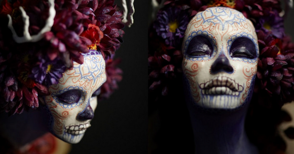 Одним из самых веселых и самых торжественных праздников в Латинской Америке, несмотня на свое название, считается "День Мертвых", или Day of the Dead. Естественно, общим символом праздника является череп, в почете - сладости в виде мертвых голов, скелетов, зомби и частей тела. Именно к этому празднику художница, известная как Krisztianna, приурочила презентацию своего арт-проекта Four Seasons Muertitas, серию жутковатых масок-скульптур, изображающих времена года.