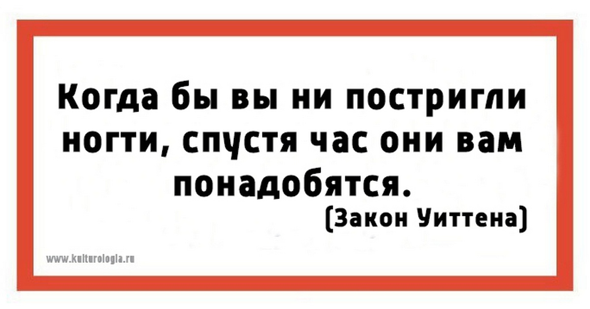 Закон подлости – самый работающий закон на земле. Это известно всем. Именно благодаря этому закону бутерброд всегда падает маслом вниз, а у самого интересного экспоната нет таблички. Остроумные люди эту тему развили и придумали ещё множество подобных закономерностей. В этом обзоре мы собрали главные, которые стоит взять на заметку, чтобы избежать неприятностей.