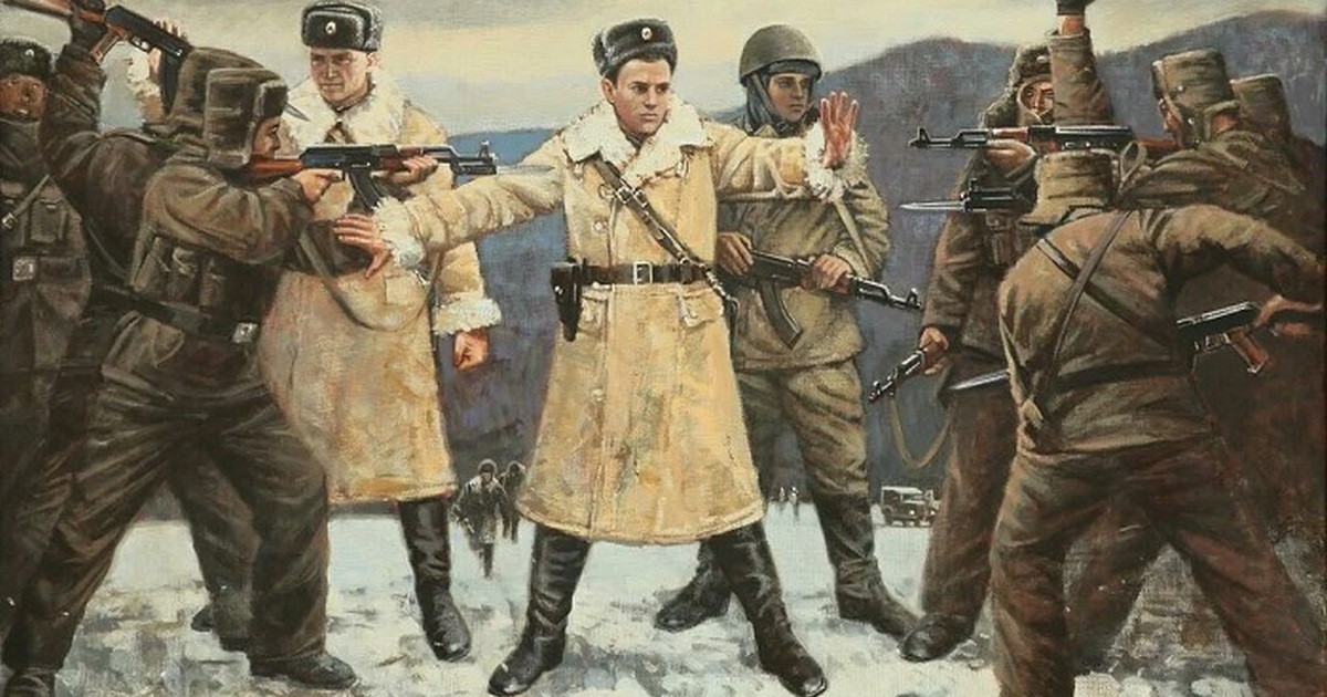 Группа советских пограничников ведет бой на острове Даманский. /Фото: warspot-asset.s3.amazonaws.com