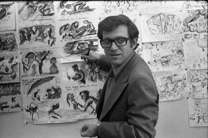 Режиссер Александр Митта с эскизами художника к фильму «Экипаж».