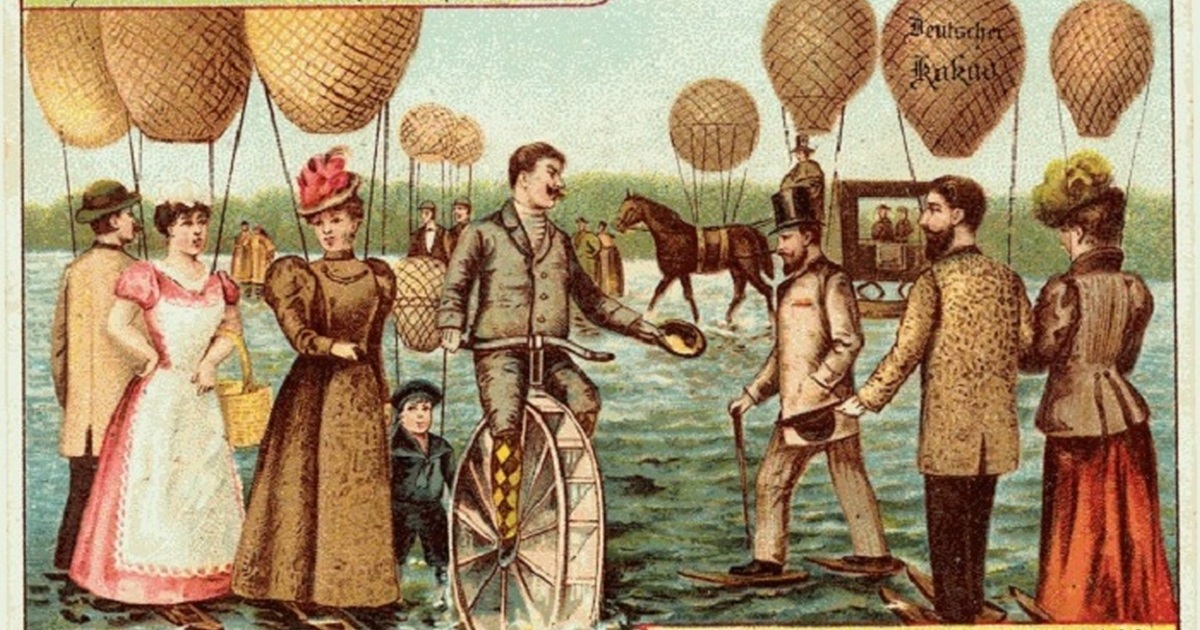 Люди Викторианской эпохи представляли, что через 100 лет, чтобы пересечь озеро, им больше не будут нужны мосты. Все смогут абсолютно свободно скользить по водной поверхности, используя деревянные башмаки, специальные велосипеды и воздушные шары.