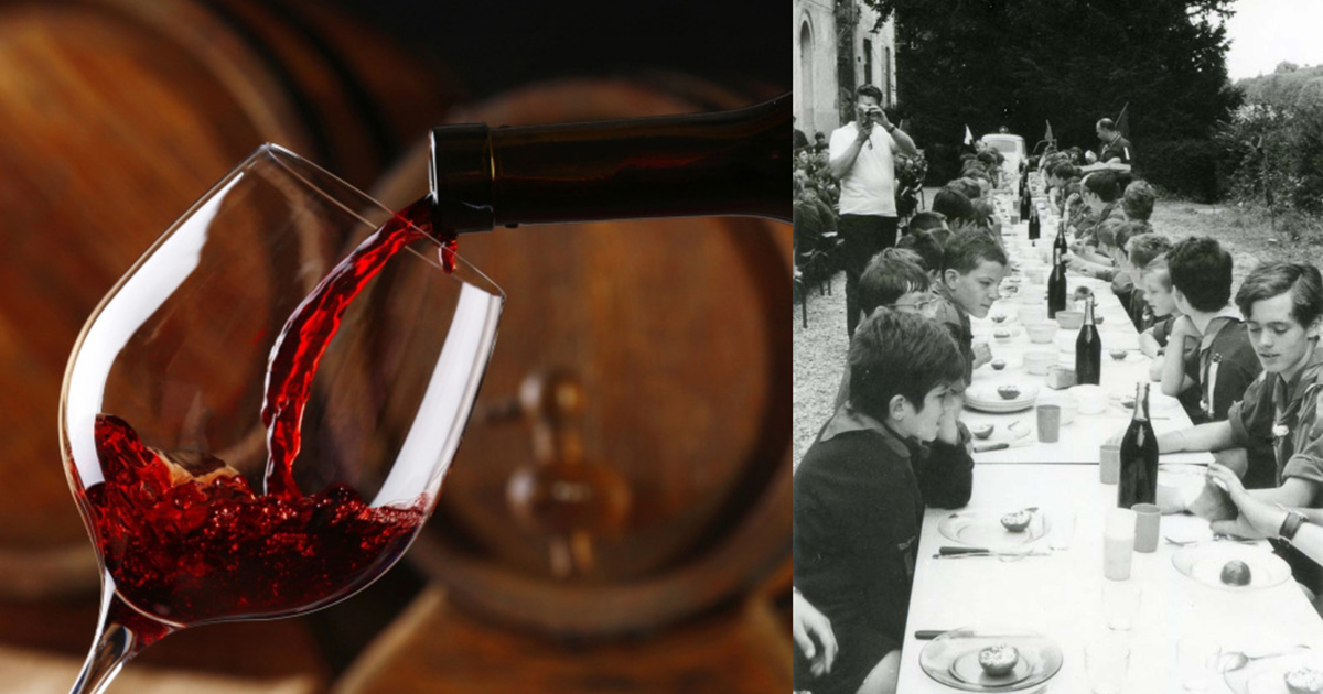 В нынешнее время это кажется не просто странным, а абсолютно неприемлемым. Тогда же это во Франции не просто приветствовалось, а всячески поощрялось. Между уроками в школьной столовой детям подавали стакан горячительного напитка вместо привычного сегодня компота или чая. Родители, собирая школьников на учёбу, в корзинку с обедом обязательно клали бутылочку с вином, сидром или пивом. Некоторые директора школ всё же не позволяли употреблять в учебном заведении спиртное и тогда детям его давали дома за завтраком.