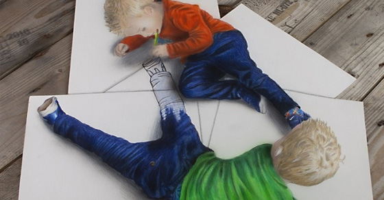 Оптическая иллюзия: рисунки, «выходящие» за границы двухмерного пространства