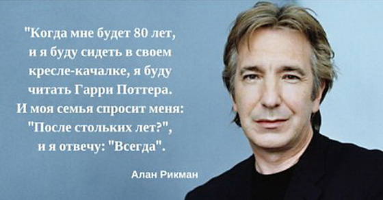 Алан душой прикипел к многотомной саге, мечтал, что в свои 80 будет сидеть в кресле-качалке и перечитывать томики о Гарри. Однако болезнь забрала от нас легендарного актера в 69 лет. В этом же возрасте и буквально несколько дней назад этот мир покинул и Человек из Космоса - Дэвид Боуи. Светлая память талантам, сделавшим этот мир ярче!