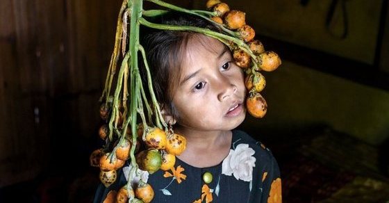 Каролин Клюппель решила увековечить традиции кхаси и создала целую фотогалерею Королевство Девочек, которая отображает повседневное окружение и культуру женщин Маулиннонга. На фото можно увидеть девочку, которая использует устройство для сушки рыбы в качестве ожерелья.