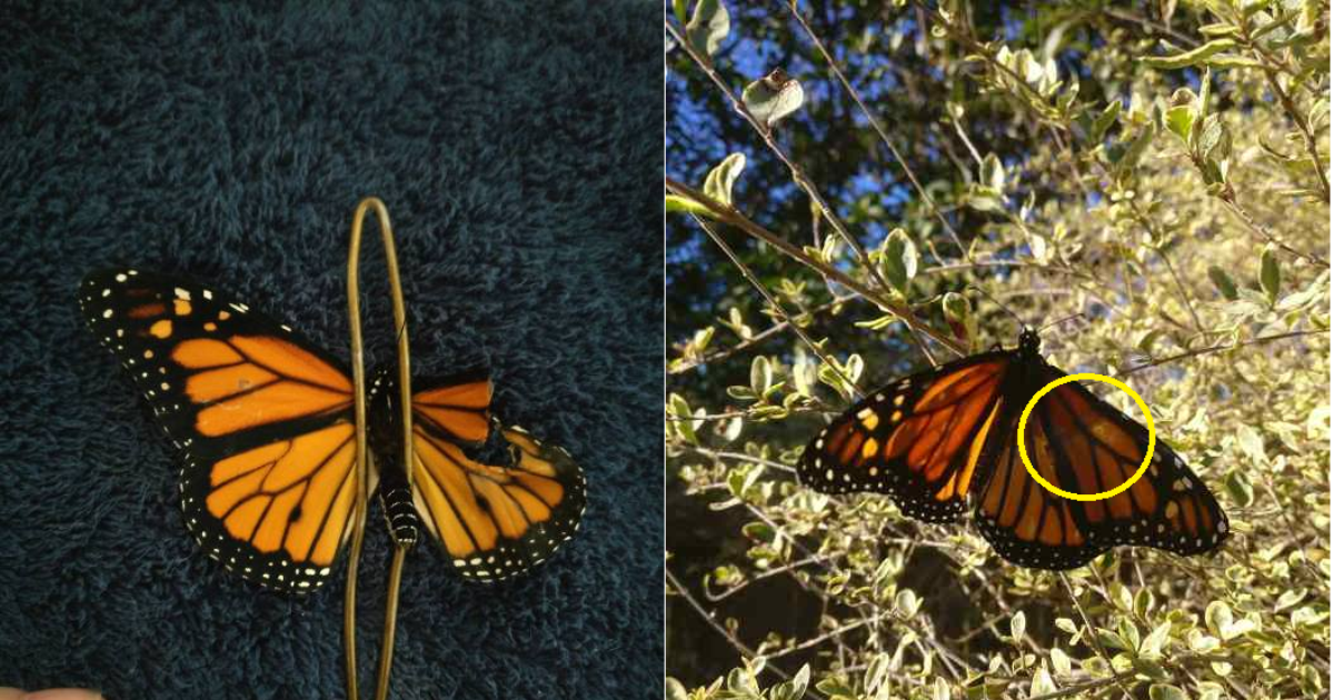 Бабочка Монарх появилась на свет с деформированным крылом.