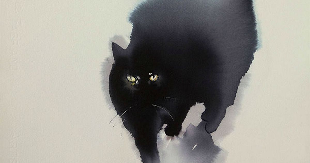 Этот художник-акварелист создаёт на влажной бумаге потрясающих котов, загадочных и очаровательных