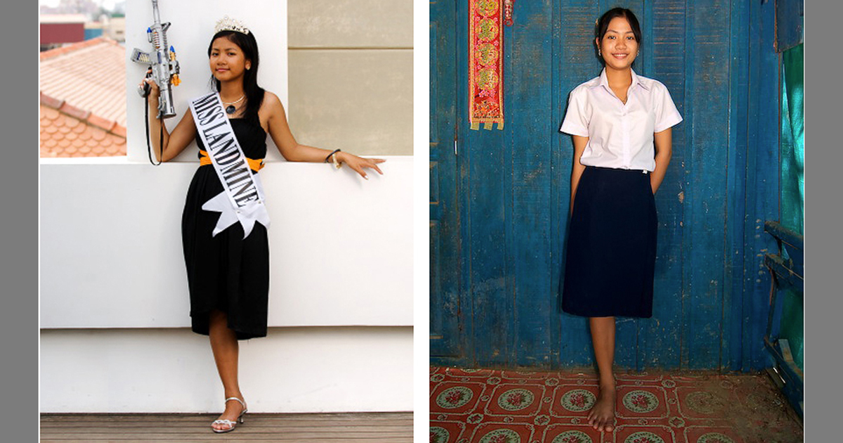 Этот конкурс красоты не похож на "Мисс Мира" или "Мисс Европы," в камбоджийском конкурсе Miss Landmine участвуют только девушки и женщины, случайно ставшие жертвами взорвавшихся мин. Впрочем, участницы конкурса утверждают, что называть их жертвами неправильно, следует говорить "выжившие" - потому что несмотря на увечья, они все еще живут и наслаждаются жизнью.