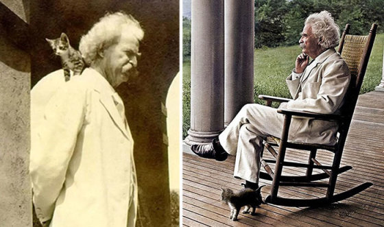 Безусловно, котики нашли место и в творчестве писателя. В «Приключения Тома Сойера» есть глава про кота и «болеутолитель», в которой загрустивший мальчик скормил местному коту снадобье, которое должно было развеять грусть Тома, а вместо этого заставило бедное животное «лихо танцевать». Как рассказывал Марк Твен, эта история основана на настоящих событиях, которые случились с писателем, когда тот был еще мальчиком.