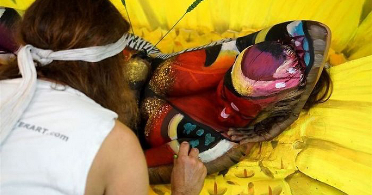 Случайно наткнувшись на эту картинку на просторах интернета, её вполне можно принять за прекрасную художественную фотографию бабочки, замершей на цветке. Что же тут удивительного? Такой снимок могут сделать многие. Но если внимательно присмотреться к этому изображению, оно безусловно поразит нас, ведь на самом деле эта бабочка — человек! Настоящий шедевр от мастера иллюзий Йоханнеса Стоттера, чемпиона мира в жанре боди-арт.