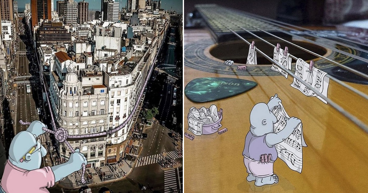 Художник превращает чужие фотографии из Инстаграма в картины с забавными персонажами