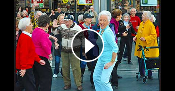 Это масштабное действо началось с того, что одна милая и весьма энергичная дама почтенного возраста внезапно затанцевала под музыку. То, что произошло дальше, конечно, ожидаемо, но тут уж, действительно, никто не устоит. Ведь такие зажигательные танцы, как правило, ужасно заразительны!