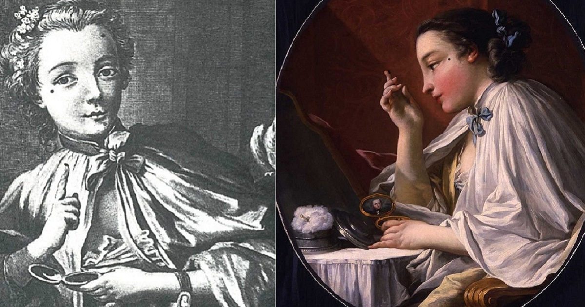 Эпоху правления Людовика XIV еще называют Галантным веком. Дамы и кавалеры носили парики, обувь на каблуках, выбеливали себя до неузнаваемости пудрой, красили губы и, конечно же, клеили на лица соблазнительные мушки. Эти искусственные родинки были буквально неотъемлемым аксессуаром аристократии, без которого нельзя являться на бал. А еще мушки использовались как орудие флирта.