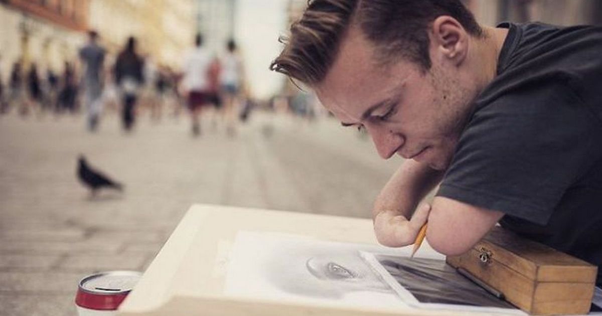 Когда нет рук, рисуют сердцем: реалистичные портреты, нарисованные художником, который родился без рук