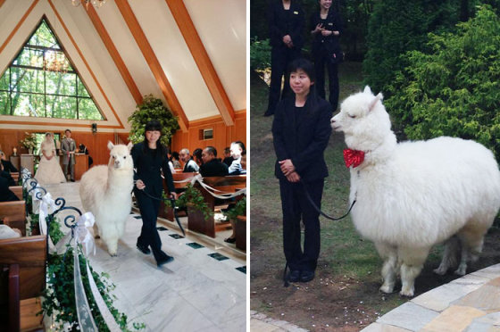 Как же свадьба без альпаки! Необычный свидетель на японской свадебной церемонии