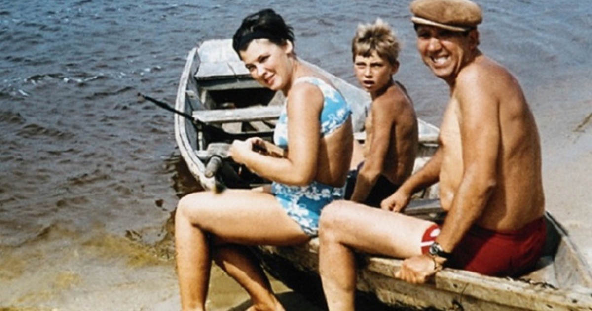 Юрий Никулин на отдыхе с женой и сыном Максимом.