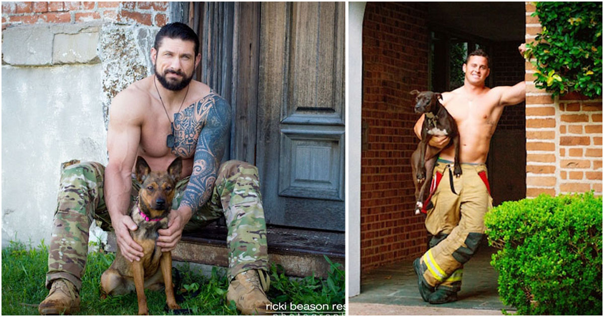 Но говоря о проекте "Сердцееды и гончие собаки," нельзя игнорировать и бравых пожарных\полицейских\военных, которые позируют вместе с животными. "Эти смелые мужчины рискуют собственной жизнью, защищая всех нас каждый день, - комментирует Рики. - Они не модели, не актеры. Они - спасатели, они - воины, они - настоящие герои." Все мужчины на фотографиях сами являются владельцами собак, а некоторые из них даже забрали своих питомцев из приюта.
