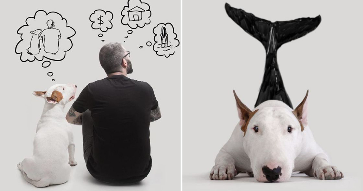 Художник рисует забавные иллюстрации, главный герой которых - бультерьер