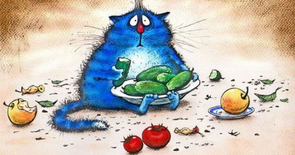 На первый взгляд работы Ирины напоминают открытки, но на самом деле это настоящие картины, по словам автора написанные в стиле «котизм». Вот такое вот необычное направление в купе с талантом и незаурядным чувством юмора и помогли ей создать замечательные полотна, на которых запечатлены синие коты, живущие своей независимой жизнью. Мурлыки ходят на рыбалку и свидания, коротают вечера за чашечкой чая, наслаждаются дневной сиестой, поют серенады, занимаются ремонтом, играют в шахматы и даже примеряют на себя образ пирата.