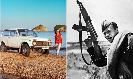 Истребитель МИГ, автомат Калашникова и вездеход Нива