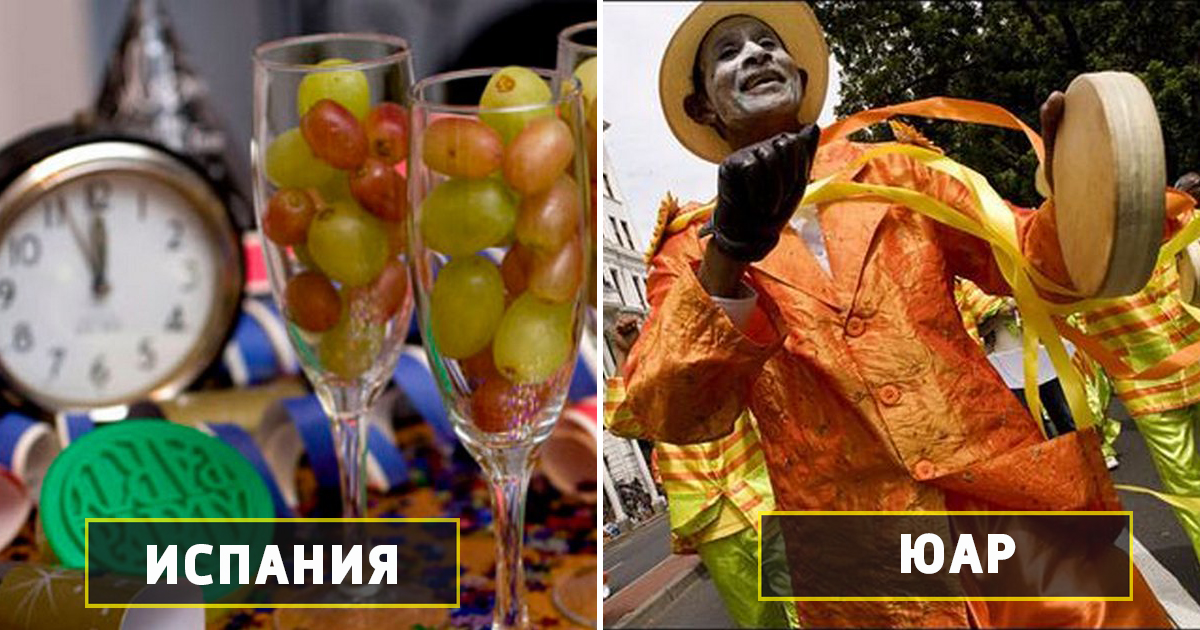 Пока часы бьют двенадцать раз, испанцы должны успеть съесть двенадцать «счастливых виноградин». Чаще всего новогодний виноград выращен в долине Виналопо, на средиземноморском побережье Испании. Бледно-зеленые сладкие ягоды позднего сорта Аледо помещают в герметичные пакеты или баночки. Некоторые едоки тренируются в течение года. Этой традиции больше ста лет, но ее происхождение спорно. Часто поедание винограда связывают с обильным урожаем 1909 года в Аликанте, когда фермеры нашли забавный способ продать излишки. Некоторые исследователи, ссылаясь на старые газетные статьи, утверждают, что обычай распространился среди мадридской буржуазии несколько ранее, в 1880-х годах. Если это так, то столичные жители копировали французскую знать, которая запивала виноград шампанским.