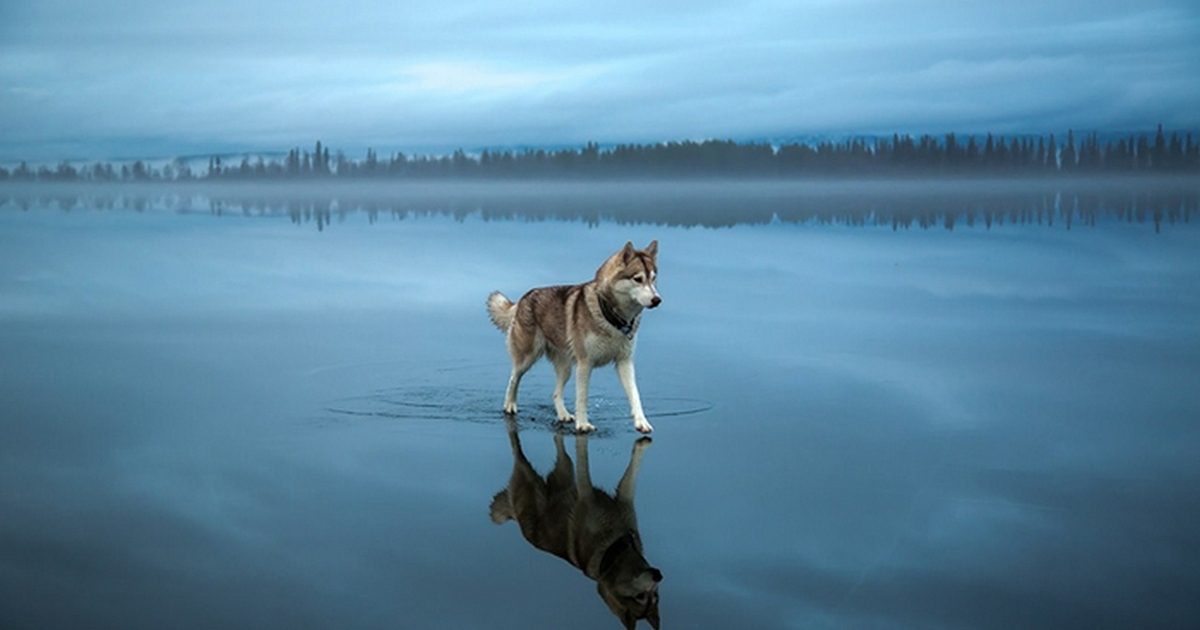 Совершенно потрясающие снимки сибирских хаски представил фотограф из Мурманской области: до самого горизонта расстилается огромное зеркало замерзшего озера, по которому резвятся две собаки, играя со своим отражением. Просто невероятная красота!