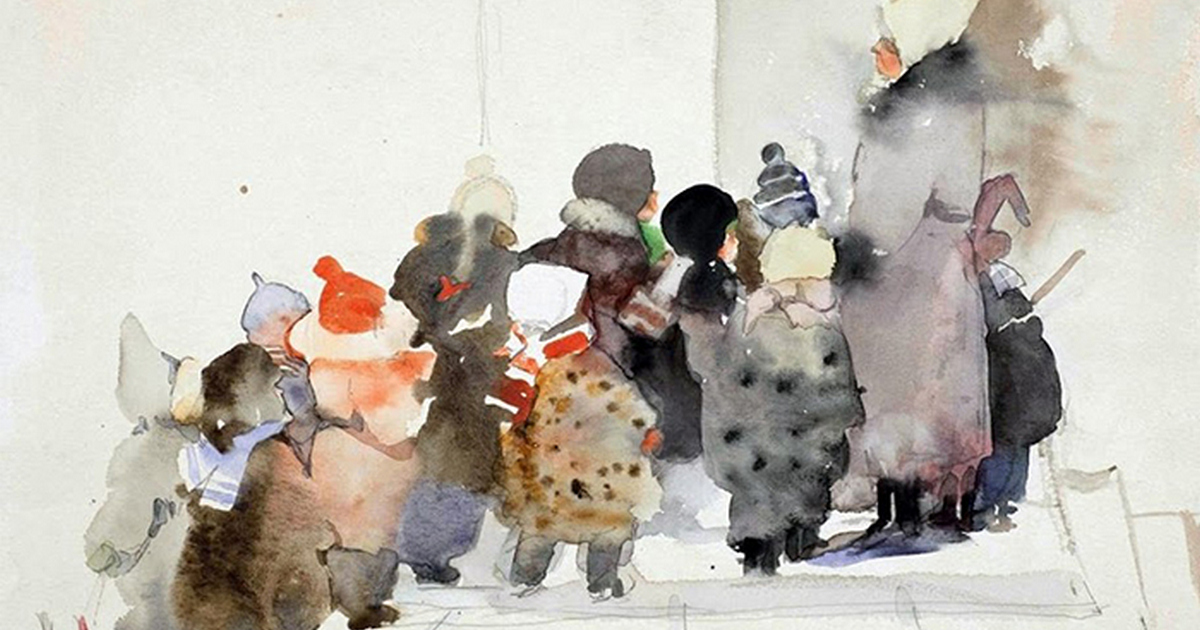 В акварелях Марии Мыслиной– уютная советская повседневность. Вот люди спешат на работу, прячась под зонтиками от проливного дождя, вот подруги, словно античные статуи, замерли у кромки воды, а вот разноцветная толпа детишек высыпала на прогулку из дверей детского сада… И многим из нас до сих пор памятны чудесные открытки, созданные художницей. Но мало кто знает, что этим прекрасным работам предшествовали годы потерь и боли. Годы ГУЛАГа…