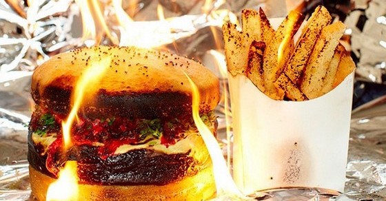 И в качестве иллюстраций для этого своего идейного манифеста Генри Харгривз сделал несколько фотографий, при создании которых он облил упомянутые выше вредные пищевые продукты жидкостью для заправки зажигалок, и поджог все это.