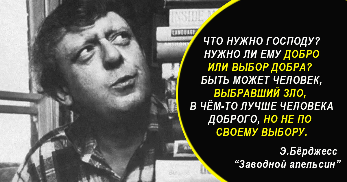 Бёрджесс планировал, что его сатирическая антиутопия "Заводной апельсин", получит признание у читателей, но никак не мог предположить, что сам процесс написания станет спасением для его жизни. Когда он закончил работу над романом, врачи были поражены состоянием пациента. Болезнь резко отступила.